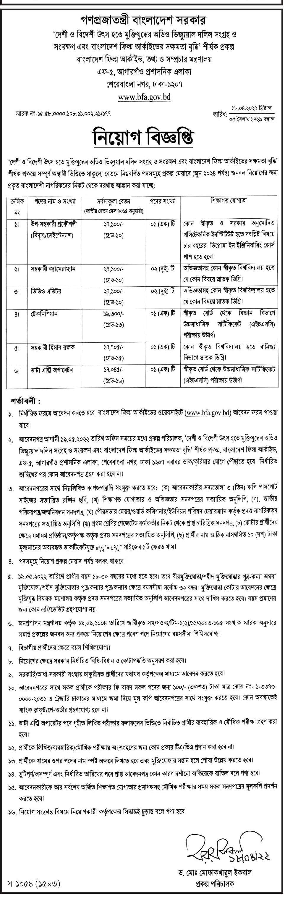 Bangladesh Film Archive BFA job circular 2025